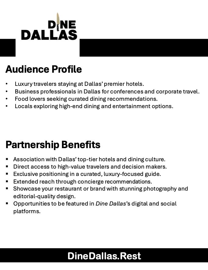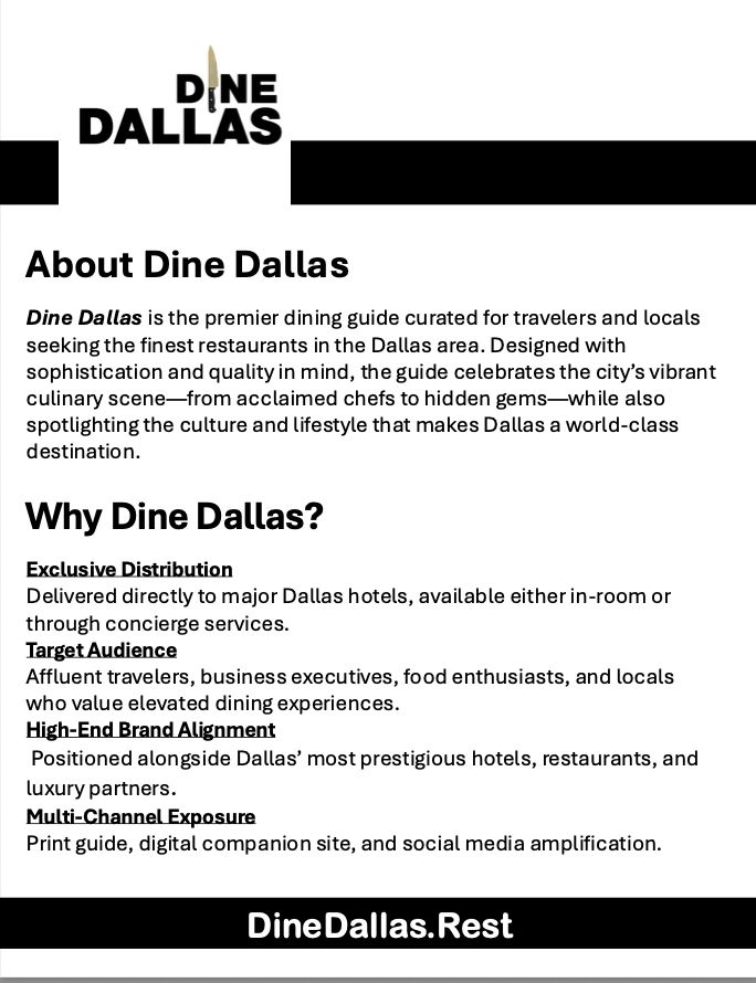 The new Dallas dining guide in hotels offers guests a curated list of the city’s top restaurants.